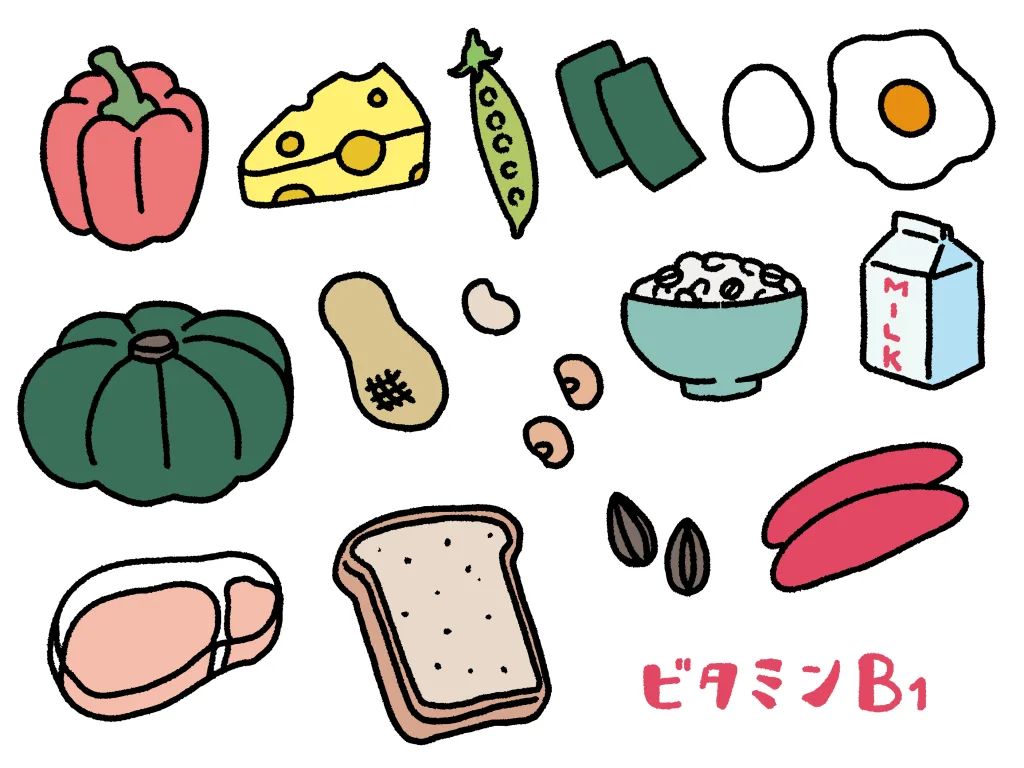 ビタミンB1は糖質の代謝を、ビタミンB2は脂質の代謝をサポートし、食べた栄養を効率よくエネルギーに変える働きがあります。