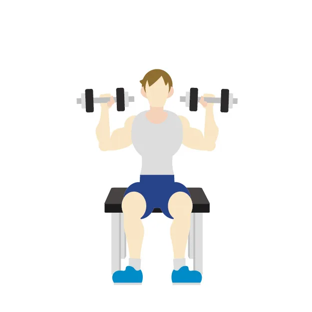 ベンチに座り背もたれを使って行う「シーテッドショルダープレス」は初心者におすすめで、腰への負担を軽減しながら安全にトレーニングできます。