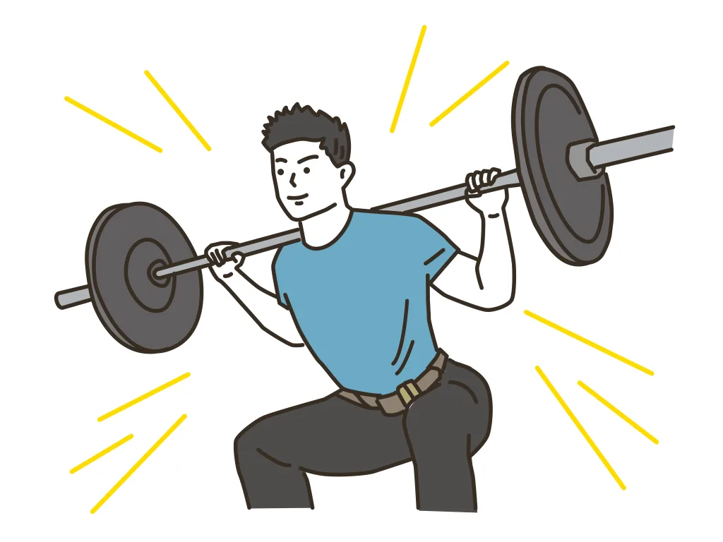 バーベルを担いで行う「バーベルスクワット」であれば、上半身の安定力も同時に養われるため、一つの種目で非常に多くの筋肉を鍛えることができます。
