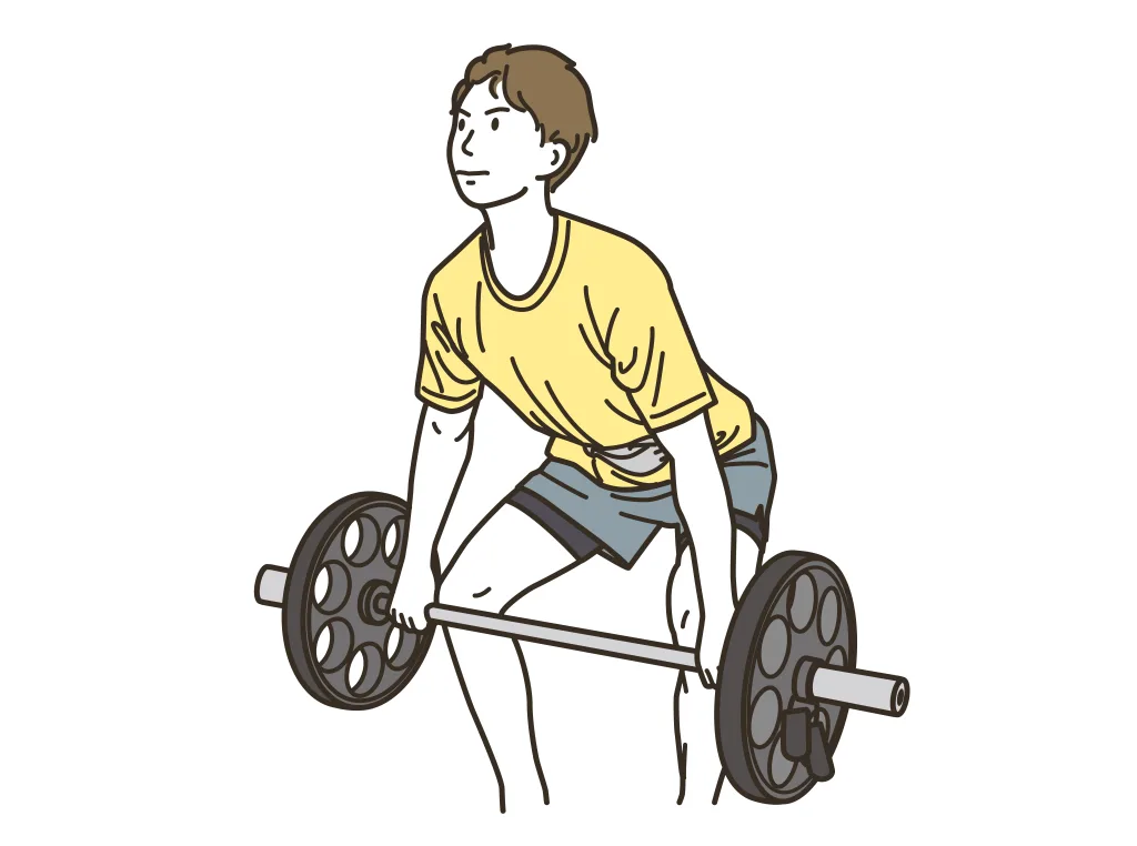 メインで働くのは脊柱起立筋(背骨を支える筋肉群)、ハムストリングス(太ももの裏側)、大殿筋(お尻)、広背筋(背中の広がりを作る筋肉)です。
