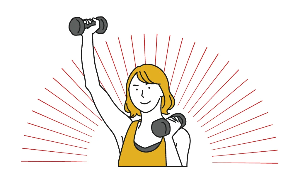 さらに腕や肩も同時に鍛えられるため、上半身全体が引き締まり、たくましいシルエットを作ることができます。