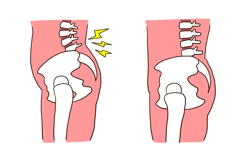 たた、腹盎筋䞋郚が匱く、腰の筋肉脊柱起立筋や倪もも前倧腿四頭筋が緊匵しおいるケヌスも倚いです。