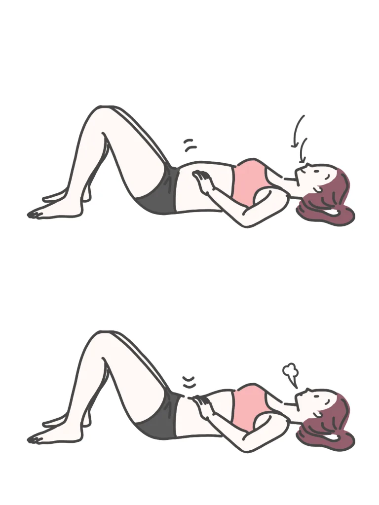 3⃣ 口からゆっくり息を吐きながら、お腹をぺたんこに