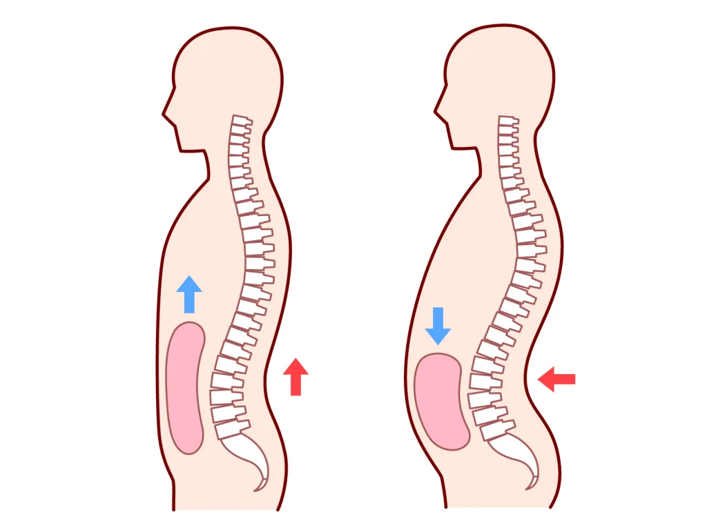 ・腰が反っおいお、䞋腹だけ前に出おいるように芋える