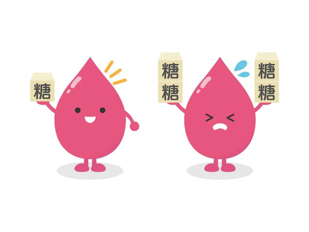 血糖値が高すぎる状態が続くと、今度はインスリンが過剰に分泌され、余った糖が脂肪として蓄えられてしまいます。