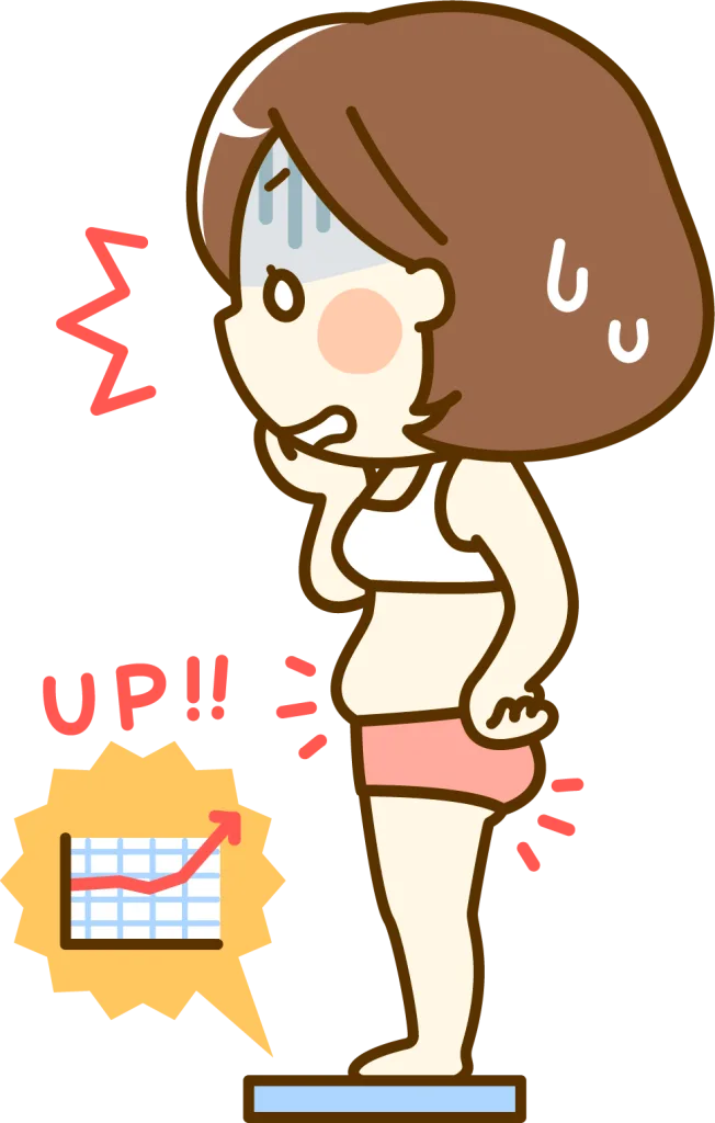 この状態になると、以前と同じ食事量でも痩せにくくなり、少し食べただけで体重が増えやすい体になってしまいます。